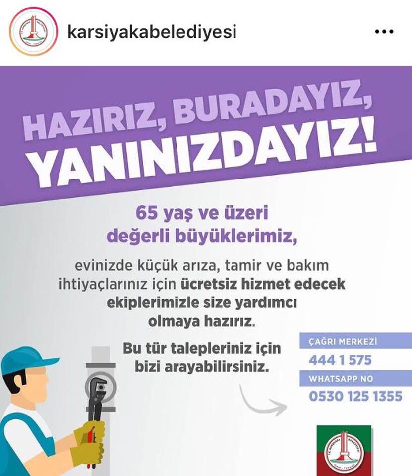 65 yaş ve üzeri değerli büyüklerimiz, evinizde küçük arıza, tamir ve bakım ihtiyaçlarınız için ücretsiz hizmet edecek ekiplerimizle size yardımcı olmaya hazırız. Bu tür talepleriniz için bizi arayabilirsiniz” dedi.