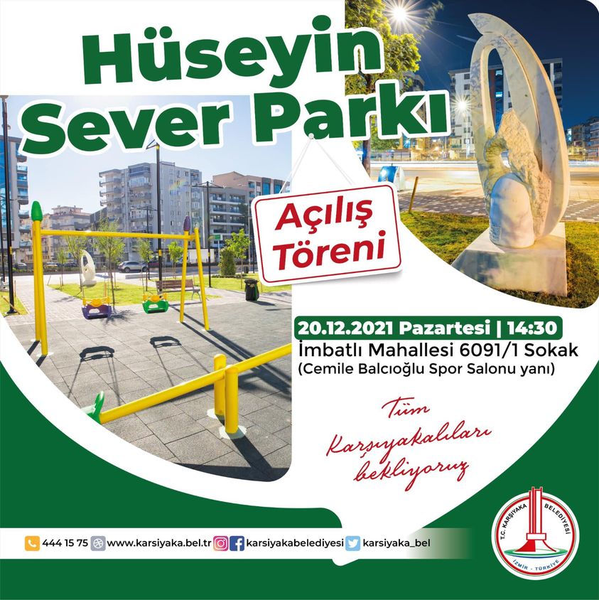 Bu büyük Karşıyakalı ve Kaf Sin Kaf’ın kurucularından, Örnekköy’ün ilk muhtarı Hüseyin Efendi’nin (Sever) adını sonsuza kadar yaşatmak için İmbatlı Mahallesi 6091 Sokak Cemile Balcıoğlu Spor Salonunun yanındaki Parka veriliyor…